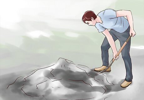 Mix the concrete according to the instructions on the bag. If you are using Portland cement, you will also need sand and aggregate (most often medium size gravel).