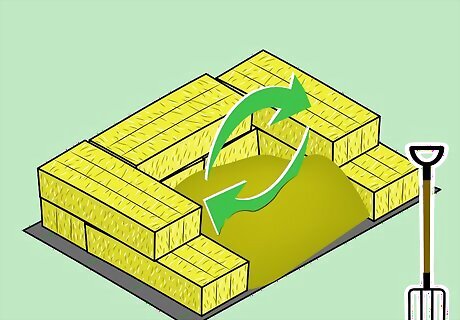 Don’t stack your bin more than two bales high. Two bales is enough to contain a reasonable quantity of compostable material. However, the smallest bins will be only one bale high. A bin that is two bales high can contain more compostable material, but it will also take longer to decompose everything than a bin that is only one bale high. If you add straw bales, don’t stack them directly over the bales below. Instead, stagger them so that the upper bale lays equally across two lower bales, crossing the corner between them.