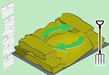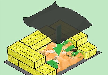 Cover the pile with black plastic. Once you’ve filled the bin, pull a black plastic bag or tarp over it. This will help maintain the necessary internal heat and retain water. The heat will help the compost break down.