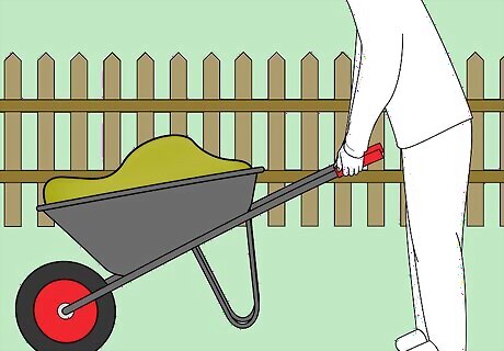 Spread the compost material on your garden. Scoop the compost into a wheelbarrow or bag, then spread it on your garden. The nutrient-rich compost will act as a mulch for your plants.