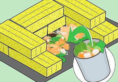 Fill the bin with waste. Toss uncooked produce scraps into the bin. Grass clippings, garden clippings, egg shells, leaves, twigs, and pine needles will also easily compost.