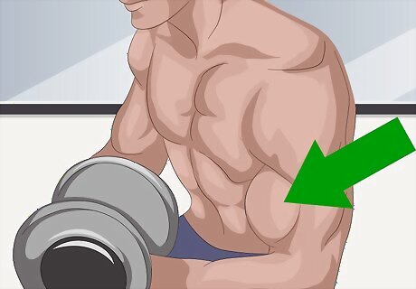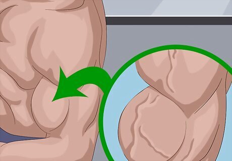 Go for a pump. As a general guideline, select a weight you can lift 8-15 times in a set while doing isolation exercises. With each contraction, blood will be forced into the muscle, causing it to become firm and engorged. This is commonly referred to as a “pump.” Not only will getting pumped make you look bigger, it also plays a role in muscle growth by transporting valuable nutrients to the muscles while moving waste products out. Squeeze the muscle tight at the end of each rep to pump as much blood into it as possible.