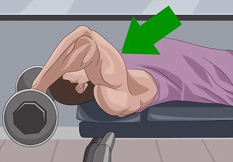 Get your triceps involved. Following a grueling chest workout, dedicate some time to working your triceps. Lifts like skull crushers, overhead tricep extensions and close-grip pushups are efficient at singling out the triceps muscles, which serve to extend the arms. As a bonus, tricep-specific training will add pounds to your bench press and ratchet up the number of dips you can bang out. The triceps are the single largest muscle group in the upper arm, so developing your triceps goes a long way toward building massive arms. Contraction of the triceps is key to all major pushing movements.