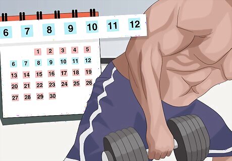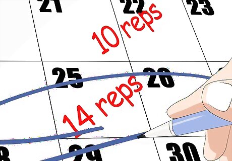 Increase your work capacity. One core principle for building muscle mass that has stood the test of time is that of "progressive overload"—continuing to challenge yourself and see results by adding weight or volume (or both) over time. If you can perform an exercise for 10 reps with a given weight one week, set your sights on 12 reps the next, or stick with 10 reps while using a heavier weight. This way, you can program progress into your training by guaranteeing that you're always pushing yourself to do more. Progressive overload is most effective when you take small steps consistently: one extra rep here, a couple additional pounds there. Trying to add too much weight or volume at one time makes you more likely to fail, which can be discouraging and lead to plateaus. Cycle between adding weight and adding volume to steadily maximize your growth potential.