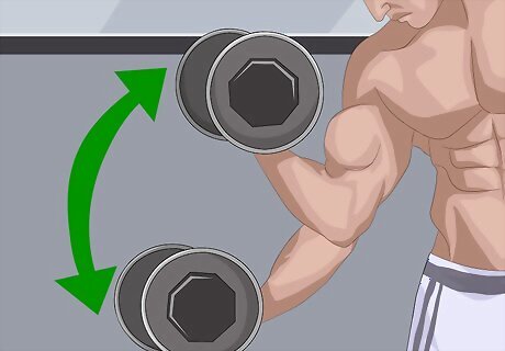 Isolate the biceps with accessory work. When it comes time to emphasize the biceps, pick one or two exercises to include at the end of your workouts. Some good choices are EZ bar curls, preacher/concentration curls and cable curls. The biceps are smaller muscles and only have a secondary function in the compound lifts, meaning they’ll need to be trained directly more often if you want them to grow. Wait until you’ve finished your strength-focused compound movements before getting into higher volume accessory exercises. The biceps are stubborn when it comes to increasing their size. They require quite a bit of isolation work with high numbers of sets and repetitions.