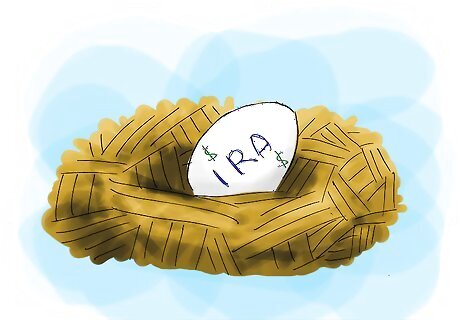 Set aside part of every paycheck you earn. How much you set aside is up to you. Some swear by 10% to 15%, others by figures a little higher. But the younger you start saving, the more time you spend saving, and the less you probably need to put away. So start saving early, even if you're only setting aside 10%. Another rule of thumb that people use is the rule of 8x. This rule of thumb recommends that you save 8 times the salary you have by the time you retire. By this yardstick, you'd do well to have 1x your salary saved by age 35, 3x your salary saved by 3X by 45, and 5X by 55. If you want to retire early, aim to put aside as much of your income as you are able. The exact amount you need to save depends on what your income is and on how early you would like to retire.