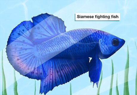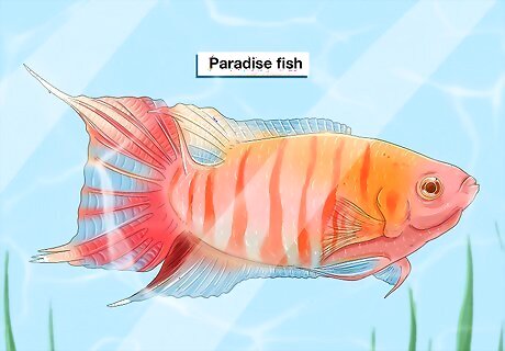 Look for hardy fish. You want a fish that isn't easy to kill. One that can survive small mistakes in cleaning or care. For example, overfeeding is a common problem that can kill many fish breeds rather easily. With this in mind, Paradise fish are a hardy, beautiful option. Siamese fighting fish are cousins of goldfish and make excellent first-time pets. They prefer a good amount of aquarium décor and are often found lounging amongst the plants, making for great viewing.