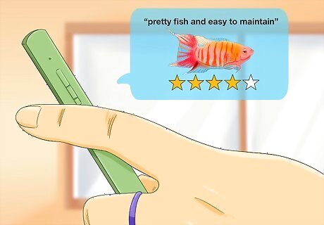 Decide to buy online or in a store. Pet stores carry a wide variety of fish that you can walk in and purchase directly. The benefit here is that you'll get to see your fish face-to-face prior to making a purchase. Online fish dealers, in contrast, offer a wider variety of fish, but you'll have to wait a bit for your fish to arrive. You also won't get to pick a particular fish.
