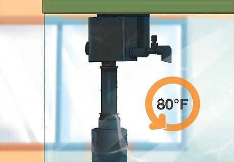 Cycle the water in the tank. Before you add the fish to the tank, cycle the fish tank. Cycling the tank ensures that there is the proper amount of bacteria in the water for the fish to thrive. Some bacteria is good for fish, and it will help break down their waste product. It will take a month to cycle the filter. One common way to cycle the aquarium without any fish is to heat the water to 80 °F (27 °C) before adding fish food. The food will decay over a few days, releasing ammonia into the water. As soon as the ammonia levels drop down to 0 ppm, you can add the fish. There are some species of fish that do not require you to fully cycle the water before you put them in the tank. Always consider the type of fish that you are purchasing before setting up the tank.