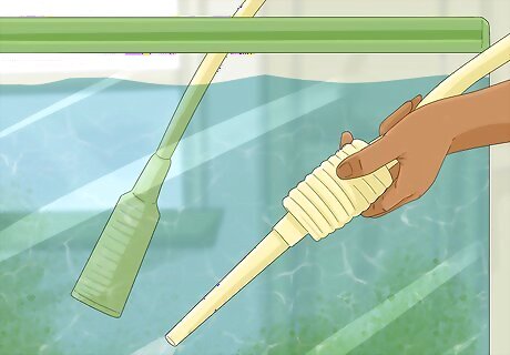 Perform regular water changes. You will want to do a partial water change of your tank at least once a week. Make this part of a regular cleaning routine and get your child involved by asking them to hold the drain hose or scrub off any dirty decorations. Make sure to also test the water regularly to ensure that the pH, ammonia, nitrite, and nitrate levels are in the proper range for your type of fish.