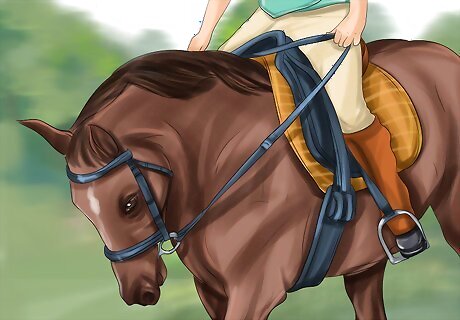 Observe your horse’s response to the saddle. For the first few rides after purchasing a new saddle, you’ll need to closely watch the way your horse behaves. If you notice a change in their posture, behavior, or ability to run or jump, your saddle may not be a good fit for the horse. For this very reason, most reputable saddle retailers have a return policy that allows for a trial period.