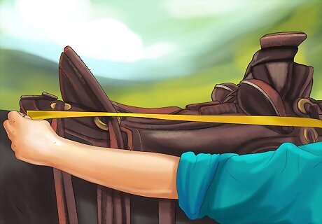 Maintain adequate space between pommel. On both English and western saddles, you’ll need to make sure there is enough space between the arched front portion of the saddle, pommel, and the withers. With someone in the saddle, place three fingers vertically between the saddle and withers. If you can do this comfortably, the saddle fits well. If it’s a tight squeeze or your fingers don’t fit at all, the saddle is too tight. For the English saddle, have a helper move the horse’s foreleg while your fingers remain between the withers and pommel to ensure the saddle isn’t impeding shoulder movement.