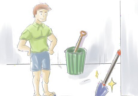 Clean debris off the shovel once you are done with it. Debris invites moisture, which promotes rust. You may choose to cote the blade with a thin film of oil after each use. Some people use a bucket full of oily sand.