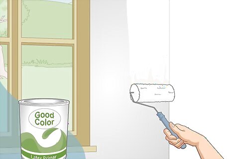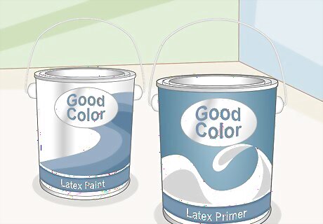 Use a water-based latex primer for most indoor surfaces. There are a variety of primers. Latex, or acrylic, primers are frequently chosen for interior surfaces like drywall. They dry out more quickly and emit less fumes than oil-based products. They also last a long time and make walls easier to clean. Latex primers have improved over time so that they work on a wider variety of surfaces. You can find latex products that hold up very well on exterior surfaces as well. Latex paints come in a wide variety of colors and finishes. Since they can only be applied over a matching primer, latex primers offer more versatility than oil-based primers. Latex primers adhere well to soft woods, brick, concrete, and some types of metal. They can be used to paint outdoors.