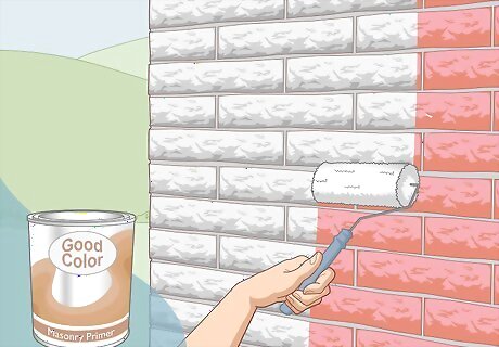 Get a masonry primer if you’re painting brick or concrete. Masonry primers come in both interior and exterior varieties. They are latex primers formulated to bond to the porous material used in masonry. Look for primers that are water-resistant, such as ones fortified with epoxy. Regular oil-based primers don’t bond well to masonry and should not be used. Stick to a specialty masonry primer or a latex enamel primer instead. Masonry primers work on several different surfaces, including stucco. Make sure you choose a primer that is compatible with the type of surface you’re painting.