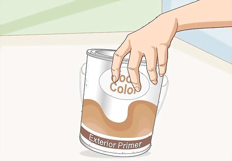 Get a damage-resistant primer for outdoor painting. There are different primers designed for indoor and outdoor use. They are usually labeled as interior or exterior primers. Make sure the exterior ones have UV and moisture-resistant additives. These additives help the primer resist weather, sunlight, and mold damage. Interior primers don’t have additives and won’t hold up well when used outdoors. If you’re planning on painting both indoors and outdoors, get a combined interior/exterior primer. These products are versatile and have additives that make them damage-resistant no matter where you use them.