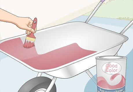 Use an oil-based primer if you’re painting metal. In particular, get a rust-resistant primer. Rust is one of the biggest issues with metal, so a good primer can cause a paint job to last much longer than usual. Oil-based primers tend to hold up well on metal and are effective at sealing out moisture than can cause rust. Paint tends to flake off of metal, so you should always use a good primer first to make it more resistant to damage.