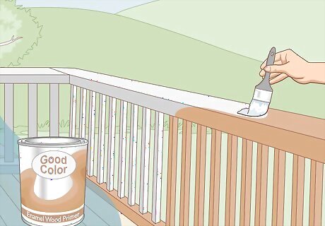 Select an enamel-based wood primer for bare wood surfaces. Enamel primers stick better to wood than the usual water-based latex primers. You can still use other types of primers, but you may need to stand them lightly to even them out. No matter what kind of product you choose, make sure it is meant to be used on wood. Oil-based primers are also fine to use on wood, but they tend to give off more polluting chemicals. The exception for latex primers is stain-prone wood like knotty pine. You should always use a strong oil-based paint for these projects.