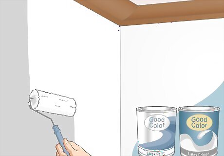 Use a tinted primer for a better match with the paint color you want to use. Tinted primer is made by mixing gray primer with colored paint. You can do this on your own by mixing the primer with paint until it’s roughly the same color you plan on finishing with. It usually reduces the number of times you have to prime a wall to get it to look consistent. Tinted primer works very well no matter what color you want to paint something. Tinted primer is a valuable option when you’re planning on transitioning a surface from a dark color to a lighter one. It’s also great when you’re painting a very dark color over a much lighter one. Most places that sell paint can also prepare tinted primer for free. Ask store employees and show them the kind of paint you plan on using for your project.