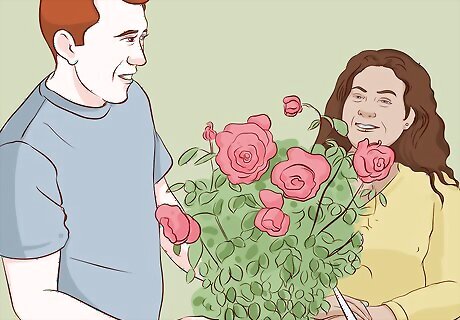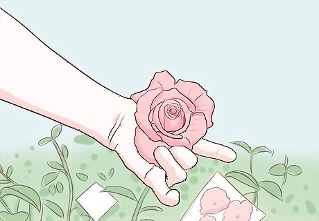 Go to a local nursery to purchase common rose varieties. Visiting a local nursery is the easiest way to find rose bushes to buy. You can see the plants up close, talk to professionals about your needs, and inspect the tags on the bushes for information about how large the roses will grow to be.Tip: If you are not sure what type of rose you want to purchase, you could also visit a botanical garden. You can look at different types of roses and get ideas for your garden. You might even be able to purchase a plant to take home.