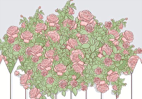 Select hedge roses to add privacy to your garden. If you want something tall as a fence and that will grow well in a row, then a hedge rose might be the best choice for you. These rose bushes are dense enough to provide some privacy while still adding beauty to your garden. Go with a Cornelia or Hyde Hall for something that will reach about 5 ft (1.5 m). Try an Agnes or Roseraie de l’Hay for a 6.5 ft (2.0 m) rose bush hedge. Opt for a Nevada or Rugosa for a 7 ft (2.1 m) hedge.