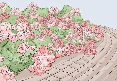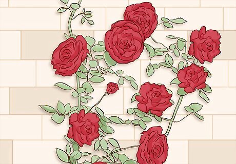 Try climbing roses if you want them to grow up a wall or archway. If you have a wall, archway, or other feature in your garden that you’d like to train roses to grow onto, then select a climbing rose. You may have to install a trellis to give the roses something to grow through and hold onto. Some popular climbing rose varieties include: Alister Stella Grey Bush Rambler Dublin Bay Laura Ford SchoolgirlTip: Climbing roses can grow anywhere from 7 to 30 ft (2.1 to 9.1 m). There are even some varieties that will grow up and around the trunk and branches of a tree.