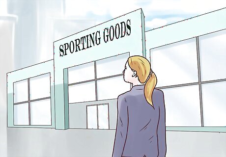 Bring your current running shoes and any socks or inserts. When you go shopping for a new pair of running shoes, it's important to bring any shoes, socks or inserts that you currently use with you -- these will help the sales assistant to identify your needs and also help you to choose a shoe that fits correctly. The sales assistant may examine the wear patterns on your old shoes to confirm your running style. For example, if the wear patterns are mainly concentrated on the inside edge of the shoe, this indicates that you tend to overpronate as you run. Overpronators usually require stability or motion control shoes. It's important to wear your regular socks and inserts when trying on new shoes, otherwise you risk buying a pair of shoes that seem to fit in the store, but feel too smart once you start running in them. You should also wear your regular running clothes when you go shopping for running shoes, so you'll feel comfortable running on a treadmill or doing a lap around the store when the time comes to test them out. Don't go shopping for running shoes when you're wearing a suit or when wearing sandals or flip-flops with no socks.