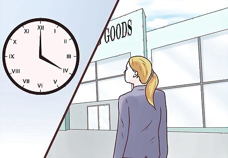 Shop later in the day. Many people make the mistake of shopping for running shoes early in the morning, but this doesn't take the fact that your feet swell throughout the day into account. As a result of this swelling, a shoe that fits in the morning may not feel so comfortable come evening time. Plan your shopping trip for some time after 4pm, as your feet won't swell much more after this time. This is important as your feet also swell while you run, so you need to buy shoes that are comfortable when your feet are at their biggest.