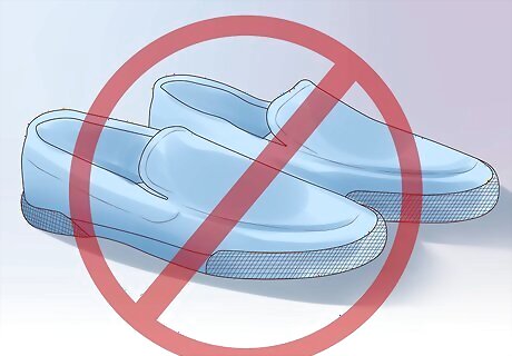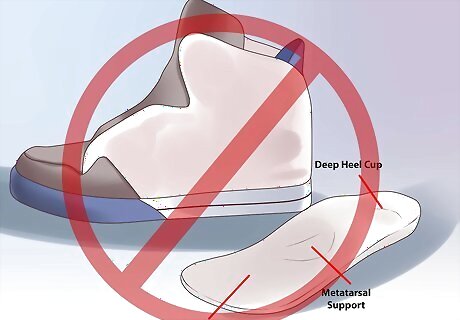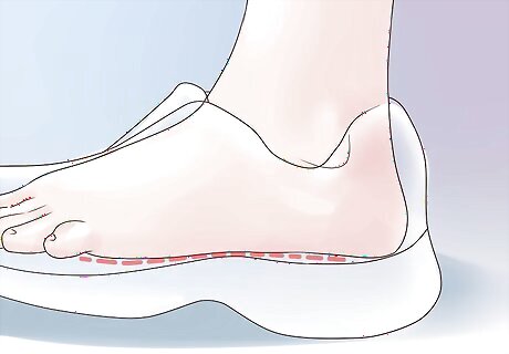 Choose the right shoes for your arches. Knowing your arch type and contour will come in handy when determining what shape and support level you require in a running shoe. People with flat arches will require a shoe with more stability and support. However, you shouldn't overdo it on the support either -- it should feel as natural possible. If your arch starts to cramp while testing out the shoe, chances are it has too much support. People with high arches may need a curved shoe, which matches the natural contour of their foot.