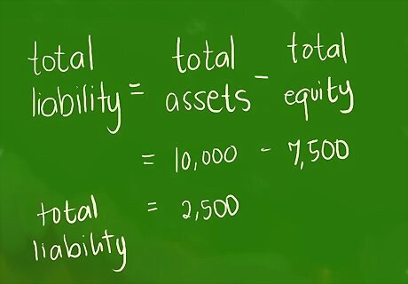 Calculate total liabilities. After calculating the company’s current assets, you’ll need to find its total liabilities. To do so, subtract total equity from the company’s total assets. In the example above, to calculate the company’s total liabilities, subtract equity from total assets: $120,000 - $55,000 = $65,000.