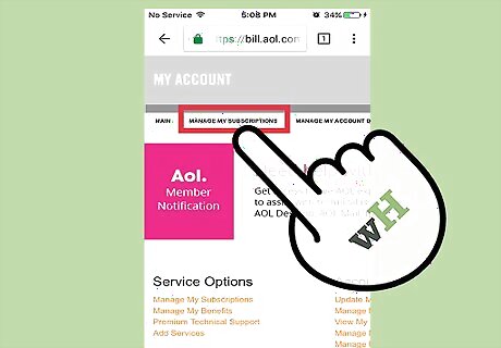 Tap the "Manage My Subscriptions" menu. "Manage My Subscriptions is located in the top left of the window, in black text, just below the main, gray "My Account" bar. A drop-down menu will appear.