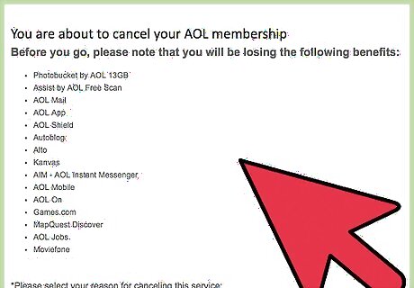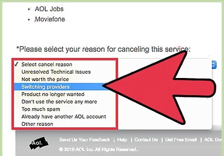 Click on the select a reason for canceling drop-down. Click on the drop-down menu beneath the prompt asking you to select a reason for canceling your AOL subscription. The prompt and drop-down are located at the bottom left of the screen, just above the orange "Cancel AOL" button.