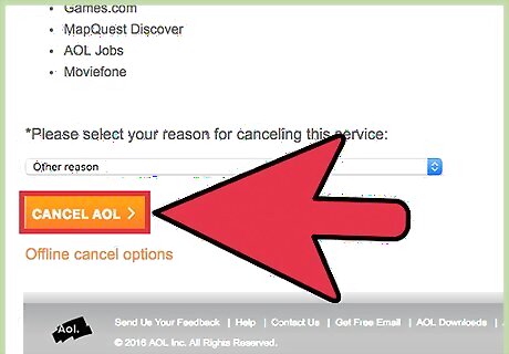 Click on "Cancel AOL." Click on the orange "Cancel AOL" button at the bottom right of the screen, located just beneath your reason for canceling. You will see the message, "We are sorry to lose you as an AOL user."