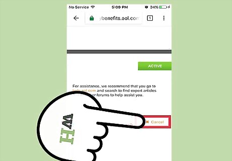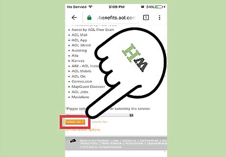 Tap "Cancel AOL." Tap the orange "Cancel AOL" button at the bottom right of the screen, located just beneath your reason for canceling. You will see the message, "We are sorry to lose you as an AOL user."