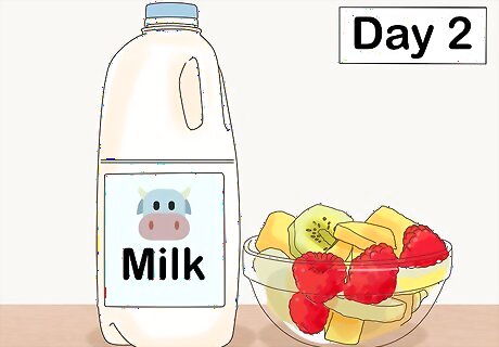 Add simple carbs into your diet on day 2. Over the course of the second day of carb loading, start to switch over from complex to simple carbs. The body can break down simple carbs, such as milk products or fruits, quickly for immediate fuel. Do your best to avoid simple carb foods with lots of saturated fats, like cookies, or you might feel sluggish on race day.
