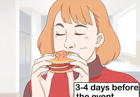 Be prepared for some digestive discomfort. Switching up your diet so suddenly and in such an extreme way may upset your stomach a bit. You can ease some of this discomfort by avoiding high-fiber foods, such as beans, during the carbo loading process.