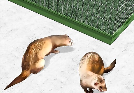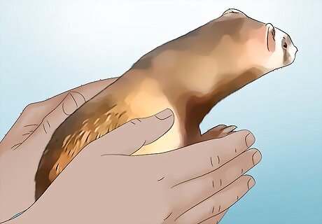 Monitor all interactions with children and other pets. Most ferrets have a friendly personality, but they can bite if they feel threatened or if they believe that you are offering them food. For those reasons, it’s best if you hold the ferret when children are around. It’s also a good idea to limit the interactions between ferrets and other family pets, such as cats or dogs. Because ferrets have such fragile bones, even a small dog can easily cause them injury.