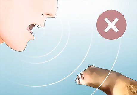 Speak in low, soft tones to your ferret. Because of their acute sense of hearing, you are likely to cause your ferret to panic if you raise your voice. This can make them wiggle, or even try to bite you, if they are being held. Instead, make a habit of using a calm, soothing voice when interacting with your ferret. This is a great way to build trust.