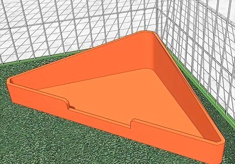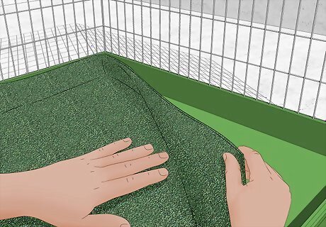 Put a litter box into the cage. Look for a cardboard or plastic litter pan. It should be about 3 to 5 inches (7.6 to 12.7 cm) in height. Some litter pans come with small latches that you can use to attach it to the side of the cage. Ideally, place the box in a spot away from your ferret’s eating area. Fill the box with about 1 inch (2.5 cm) of paper or plant pellets. These are available at your local pet store. The dust from regular litter can irritate your ferret’s lungs.