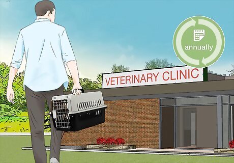 Take your ferret for annual vet visits. Like most other animals, ferrets need to be checked out by a vet at least yearly. At these visits your vet will do a general physical check-up of your ferret. They will also ask you if your ferret has been suffering from any health or behavioral problems. Your vet will keep your ferret on a standard vaccination schedule, including yearly rabies shots. Many jurisdictions require these shots for domestic pets.