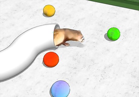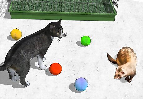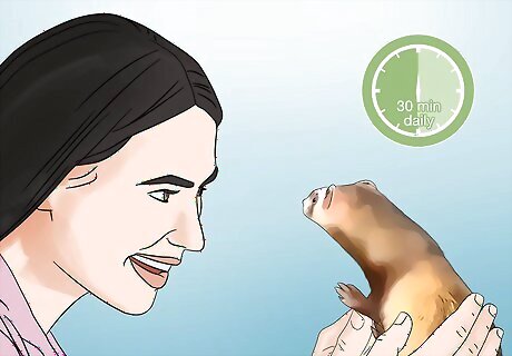 Play with your ferret for a minimum of 30 minutes each day. Ferrets are highly intelligent and thrive on human contact. Playing with your ferret can be as simple as gently rolling a few plastic balls in front of it. Or, you can get more elaborate and teach your ferret to come when called, roll over, or even fetch. The key to teaching tricks to your ferret is repetition. Repeat the same request over and over again, providing treats, such as cooked chicken pieces, when your ferret gets it right.