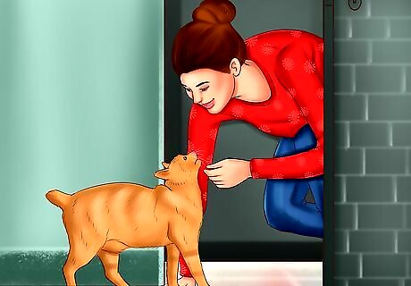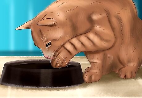 Provide fresh water for the cat. Your cat should have access to fresh water in a porcelain or ceramic water bowl. Fill up your cat's bowl with fresh water every day and/or at every meal time. Do not give the cat cow's milk, as this can actually cause digestion issues for the cat. Stick to fresh water only.