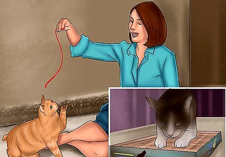 Give the cat daily affection and attention. Like most cat breeds, Pixiebob cats respond well to daily attention and affection from their owner. Take the time to pet and scratch your cat at least once a day. You may also spend time snuggling the cat on the couch or in bed to show your affection. You should also try to have at least one play session a week with the cat as a way to show them attention. Play with a favorite toy or scratch pad. You may take the cat on a walk around the neighborhood on a leash and collar, if the cat shows an interest in doing this.