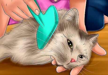 Brush the cat on a weekly basis. Pixiebobs can have short or long coats. Either way, they are easy to groom and require combing or brushing on a weekly basis. You may use a grooming brush to give the cat a light brushing once a week to maintain its coat. Brush your cat's entire coat, from their head to their tail. Most cats enjoy a brushing session with their owner as a way to bond.