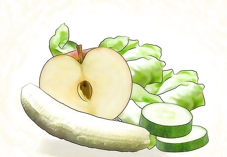 Feed your millipedes. As with any pet, you will need to feed your millipedes a healthy diet. Millipedes are detritivores, which means that they feed off of decaying live matter in their environment. In the wild, this means trees, moss, and other plants. You can feed your millipedes a wide variety of produce. Try cucumbers, lettuce, and zucchini. Giant African Millipedes will also eat grapes, yams, and apples. You can place the produce in the cage and the millipedes will eat it over the course of the day. Just add more food when they are running low.