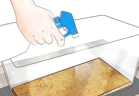 Provide a moist environment. Make sure that the atmosphere in the cage meets the millipedes' moisture needs. Millipedes thrive in slightly damp soil. Add some soil and some moss to their cage. You can purchase this at gardening stores, and it provides the needed moisture. Purchase an organic soil with no added chemicals. You do not need to provide water unless the cage is in a very dry area. If you are concerned, you can soak some cotton wool in water and place that under the soil or moss. You can also use a spray bottle to mist water into the cage. Do this every couple of days.