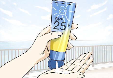 Wear sunscreen on your hands whenever you go outside. Use a hand cream or sunscreen with an SPF of at least 25 to protect your skin from the sun’s rays. This will help to prevent ailments stemming from excessive exposure to sunlight, such as melanoma. Wear sunscreen on your hands and other exposed parts of your skins whenever they’re exposed to the sun for long periods of time, even in the fall and winter.