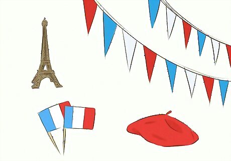 Play French trivia for casual entertainment. Look online for interesting facts about France to create your own French trivia game to play with your guests. Separate into teams or play individually and offer the winner a bottle of French wine or a special dessert. Mix up easy questions, like “When was the French Revolution?” with harder ones, like “What is the population of Paris?”