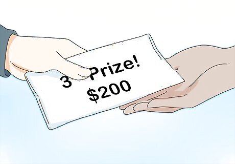 Award actual prizes, such as money or gift certificates. Currency notes and coins bear the portraits of George Washington, Thomas Jefferson, Alexander Hamilton, and Benjamin Franklin, so money is a great prize for a constitutional contest. If you’re celebrating at a school or library, you could ask local businesses to sponsor scholarships or donate gift certificates for essay contests. For contests held at schools, the grade that wins a trivia competition or costume contest could win a pizza party. Good prizes can encourage more participation in your contests.