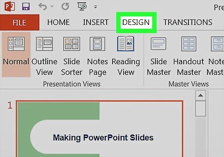 Click the Design tab. It’s in the menu bar at the top of PowerPoint.